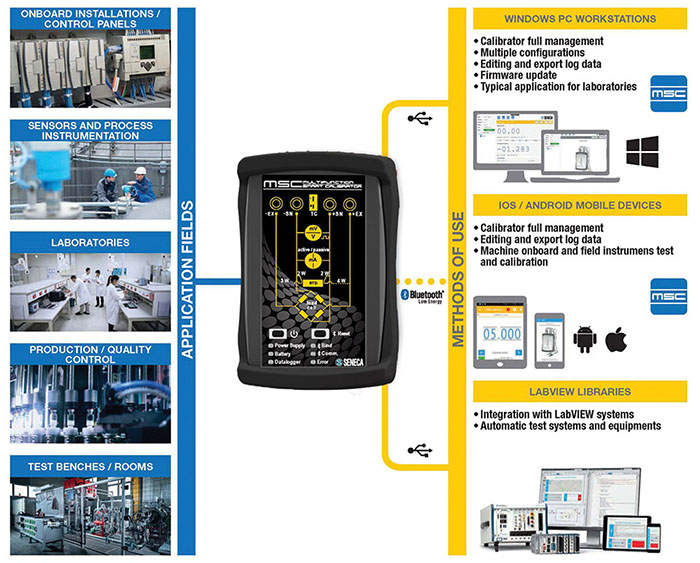 Podjetje SENECA predstavlja nov multifunkcijski kalibrator MSC (Multifunction Smart Calibrator), ki je fleksibilen instrument za namen vzdrževanja ter testiranja senzorjev in procesnih sistemov. Z najboljšo natančnostjo v svojem razredu, ki je boljša od 0,05% za vsak tip vhoda / izhoda, MSC ponuja merjenje, generiranje in simulacijo signalov, kot so analogni, digitalni, signali temperaturnih senzorjev in merilnih celic.