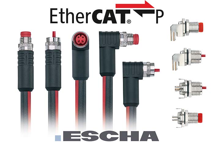 EtherCAT P omogoča komunikacijo in napajanje preko enega vmesnika. S tem namenom ESCHA ponuja celovit program za takšne aplikacije. Njihovi štiripolni kabli in konektorji s P-kodiranjem združujejo komunikacijo in napajanje v enem kablu preko M8x1-vmesnika, kompaktnega in v industriji potrjenega vmesnika.