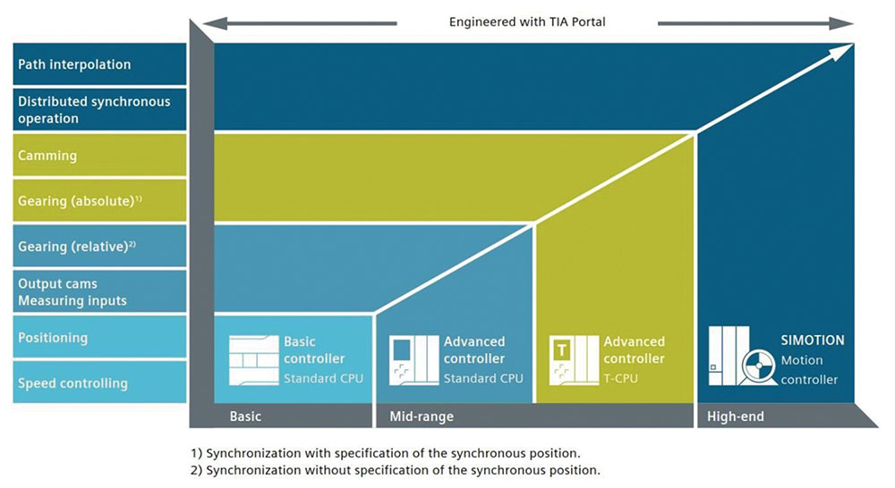 Krmilniki serije SIMATIC S7-1500T technology poleg standardnih in varnostnih funkcij omogočajo dodatne knjižnice za poenostavljeno manipulacijo elementov gibanja.
