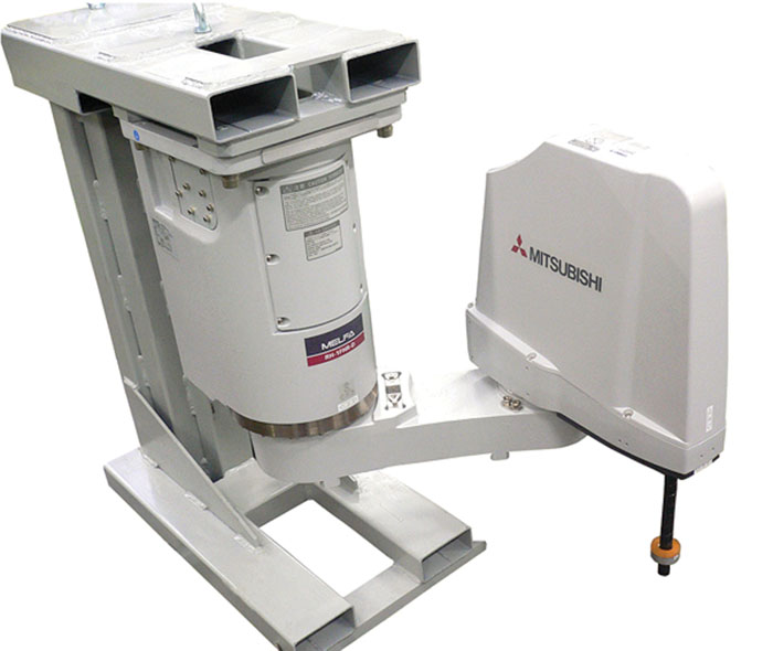 Z novim robotom Mitsubishi Electric dopolnjuje F serijo SCARA robotov. Mitsubishi z omenjenim modelom ponuja hitrega robota, idealnega za rokovanje z manjšimi (sestavnimi) deli.