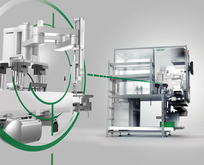 Mitsubishi Electric in nemški proizvajalec testnih in sestavljalnih sistemov Engmatec Gmbh sta skupaj razvila sistem za visoko hitrostno zategovanje vijakov. Rešitev temelji na Mitsubishijevem SCARA robotu serije RP z dvojno roko in vakuumskim prijemalom.