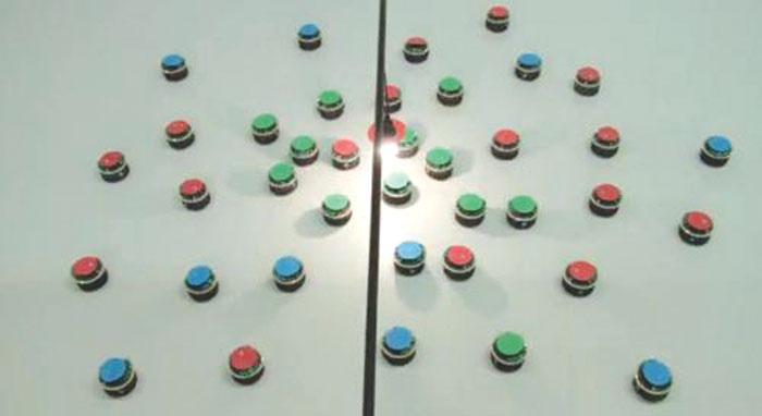 Raziskovalci v Veliki Britaniji so pokazali, da lahko roj robotov izvede preproste naloge prinašanja in prenašanja stvari, tako da se združijo okoli predmeta in ga skupaj potisnejo po površini.