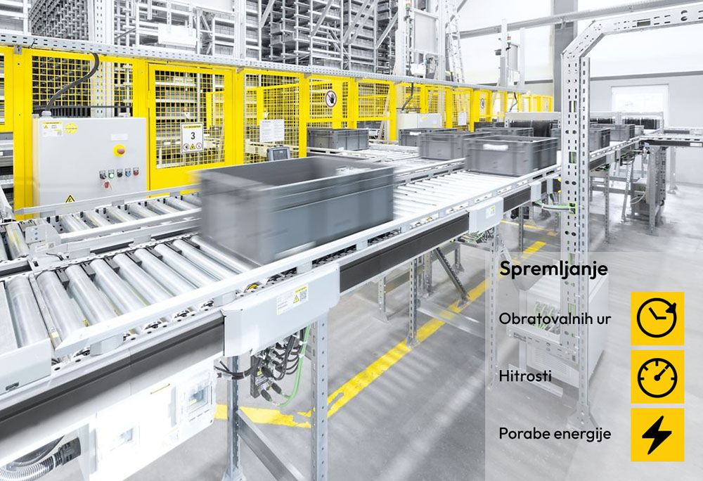 Digitalizirane transportne linije omogočajo spremljanje stanja sistema v realnem času. Podatki o delovanju pogonov, porabi toka in obremenitvah se zbirajo neposredno na transportnih modulih.