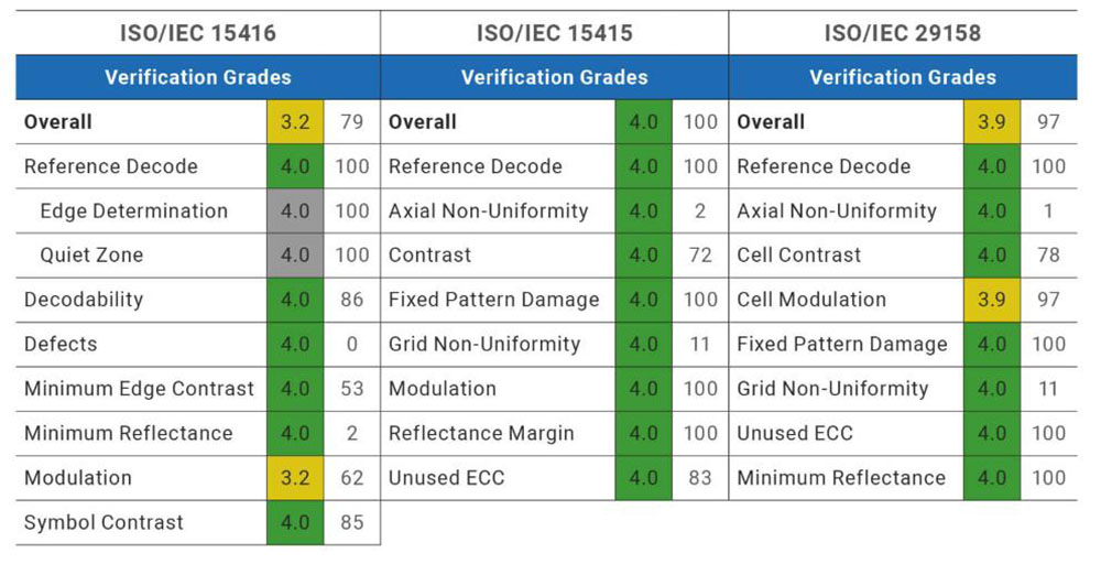ISO/IEC 15415, ISO/IEC 15416 in TR 29158 skladnost
