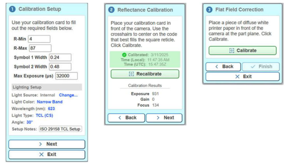 Avtomatizirana kalibracija uporablja vgrajen čarovnik za optimizacijo jasnega in doslednega zajema slike