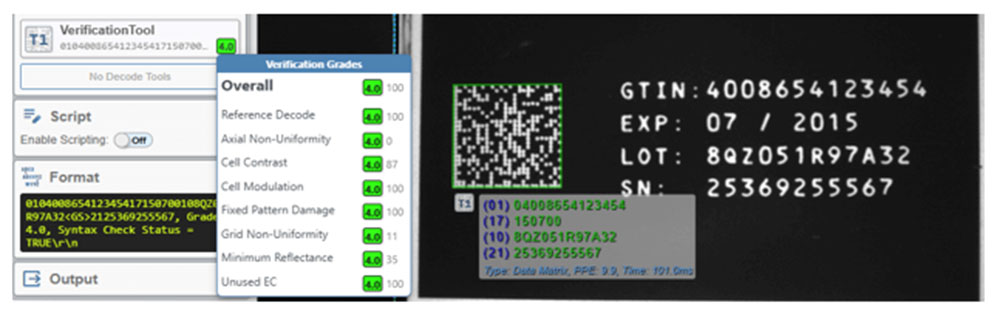 OMRON VHV5 presega standarde ISO z vgrajenim GS1 preverjanjem sintakse, ki analizira kodirane podatke, preverja identifikatorje aplikacij (AI), formate in dolžine glede na GS1 standarde ter zajame napake pri oblikovanju, preden kode dosežejo stranke ali regulatorje.